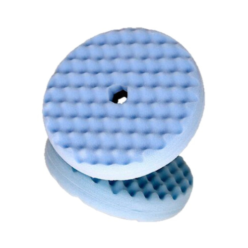 Mopa azul de espuma para abrillantar de doble cara y gran rendimiento. Elimina marcas de remolino en superficies pintadas, aún en vehículos con pintura oscura y difícil. Diseño único con Quick Connect (conexión rápida). Para ser utilizado en paso III de pulimiento.